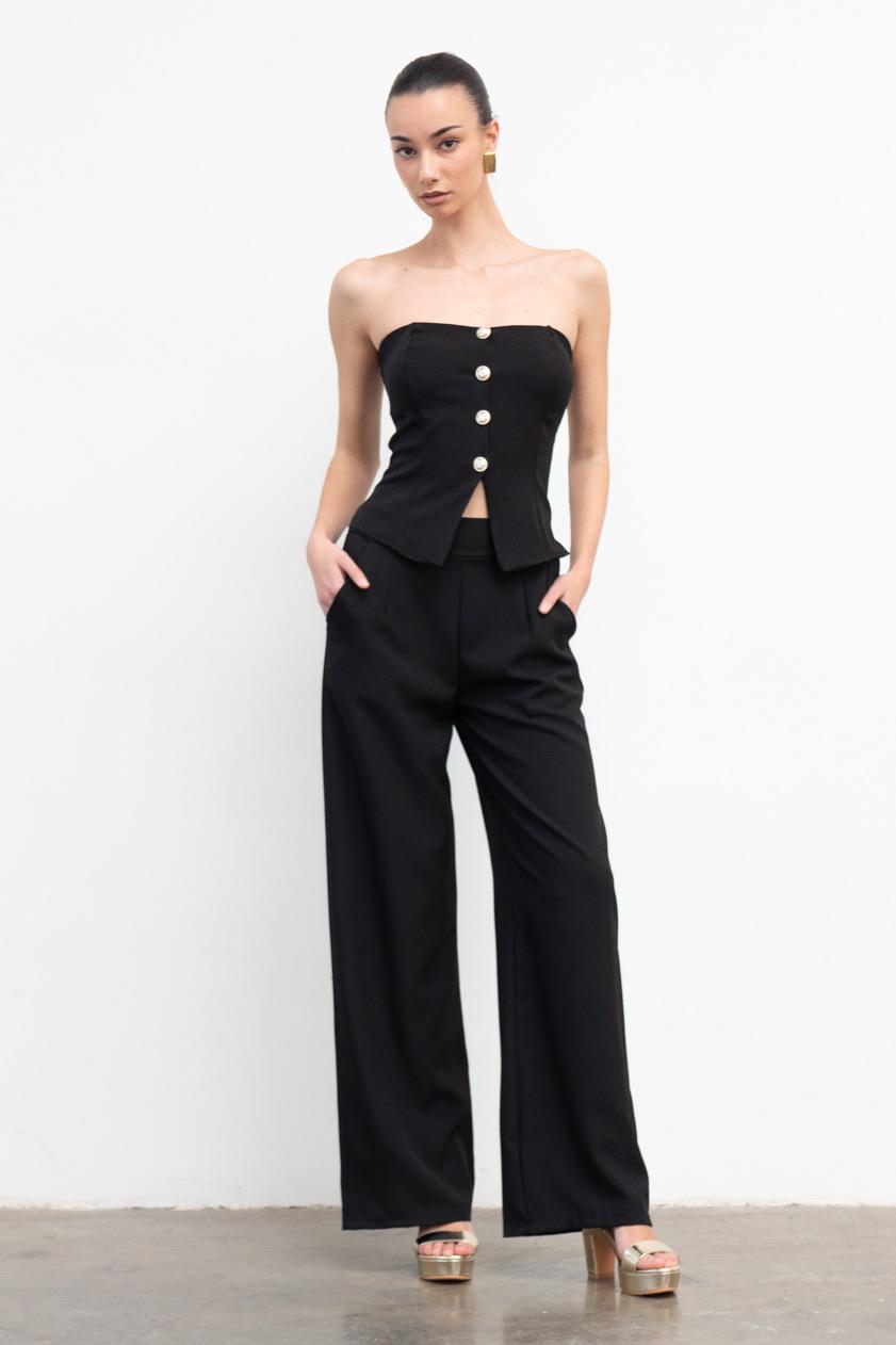 Conjunto de top tipo corpiño más pantalón, el corpiño lleva elástico en la espalda tipo nido y botonadura delantera , el pantalón lleva goma en la cintura . vale para una talla S, o M.