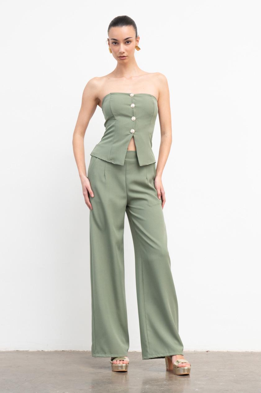 Conjunto Corpiño Ajustado y Pantalón Talle Alto en Verde para Mujer