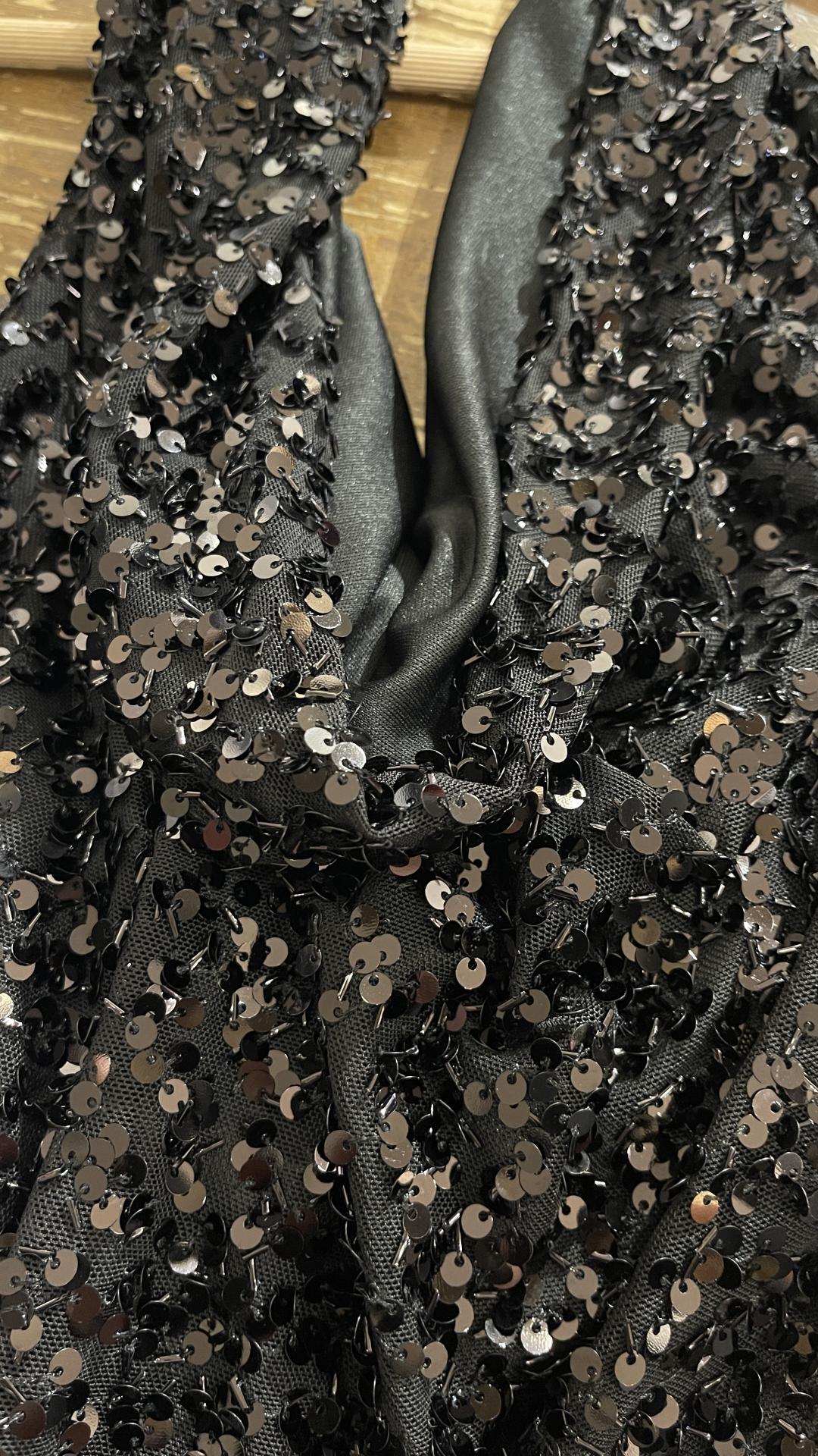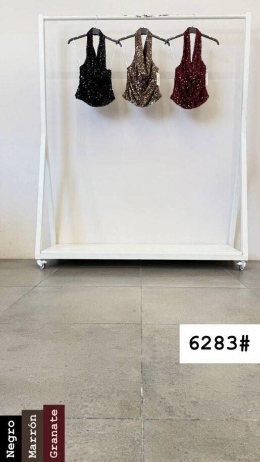 Top cascada lentejuelas , espalda al aire, tejido elástico, lleva forro en algodón en el interior.
