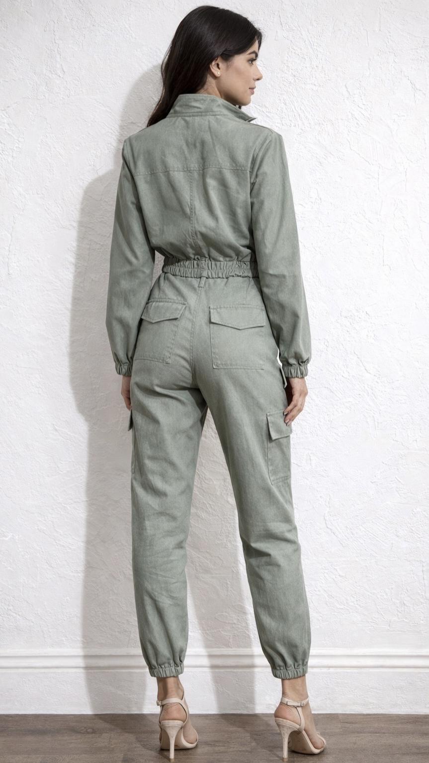 Conjunto de pantalón y chaqueta modelo cargo, pantalón con bolsillos delanteros y traseros,goma elastica en la cintura, cierre de cremallera y botonadura, chaqueta cierre cremallera con bolsillos delanteros, tejido elástico.